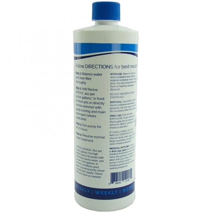 Revive! is compatible with all pool chemicals, sanitizers and finishes. Plus, it will not cloud the water or stain pool decks. Ideal for well water applications and preventing scale on salt system equipment.