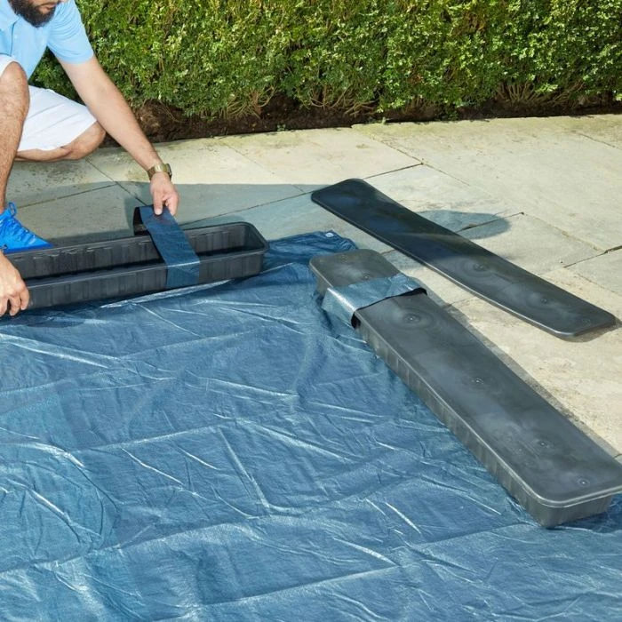 A reliable method for holding your winter pool cover in place. Made of high-density polyethylene which is more durable and longer lasting than traditional water bags. Just fill with water and snap on pool cover. 3 ft L x 7.25 in W x 3.25 in D